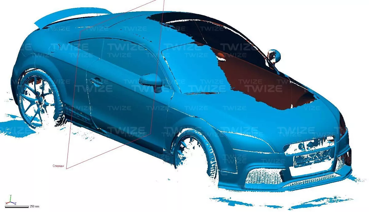 Было получено 3/5 части геометрии кузова в виде полигональной 3D‑модели для дальнейшей разработки обвеса в программном обеспечении 3D MAX.