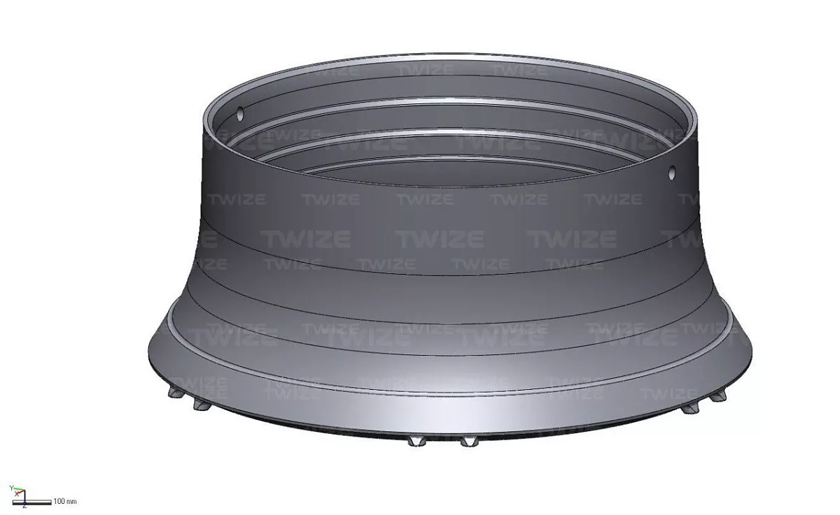 Проведено 3D‑сканирование оригинальной детали, построена твердотельную 3D‑модель. Составлен комплект чертежей обечайки.