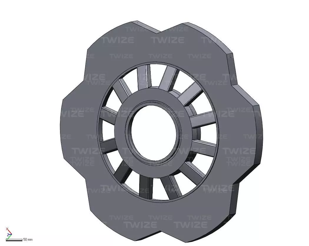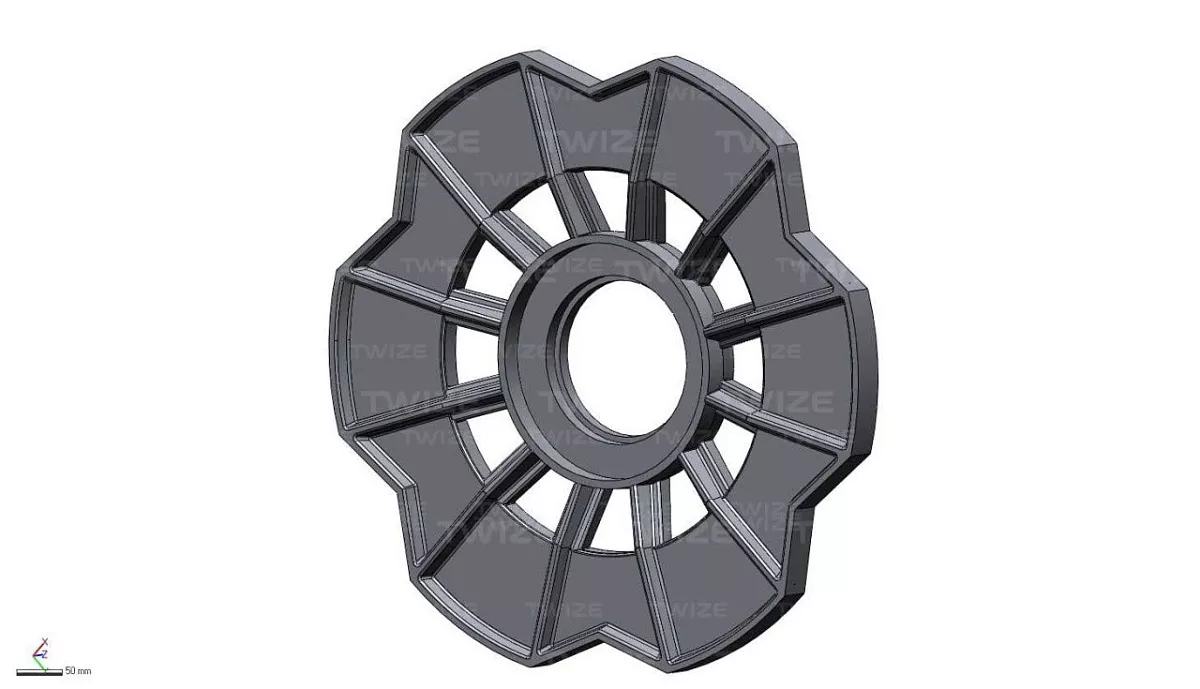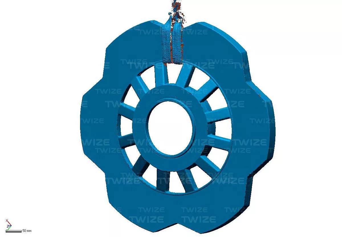 Проведено 3D‑сканирование изделия. Создана CAD‑модель изделия. На основании CAD‑модели построен чертеж по ЕСКД для производства и произведены детали путем металлического литья с последующей мехобработкой.