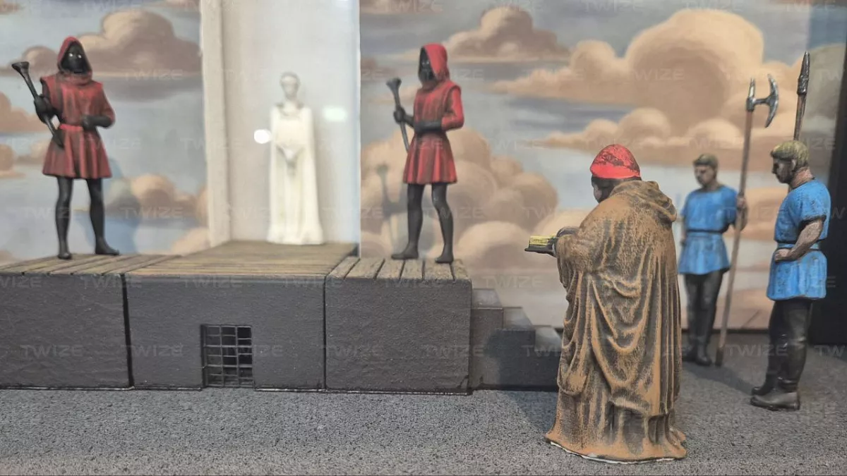 Напечатан макет и фигурки персонажей на фотополимерном 3D‑принтере – это решение позволило передать мельчайшие детали моделей: костюмы и другие атрибуты. "Ожившая" объемная картина художницы Галины Маркеловой была представлена на выставке «Магия театра и кино» в ЦДХ.