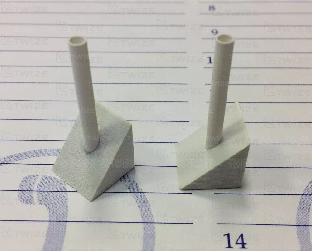 Создать деталь датчика измерительного прибора из высокоточного фотополимера с толщиной стенки трубки 200 микрон.