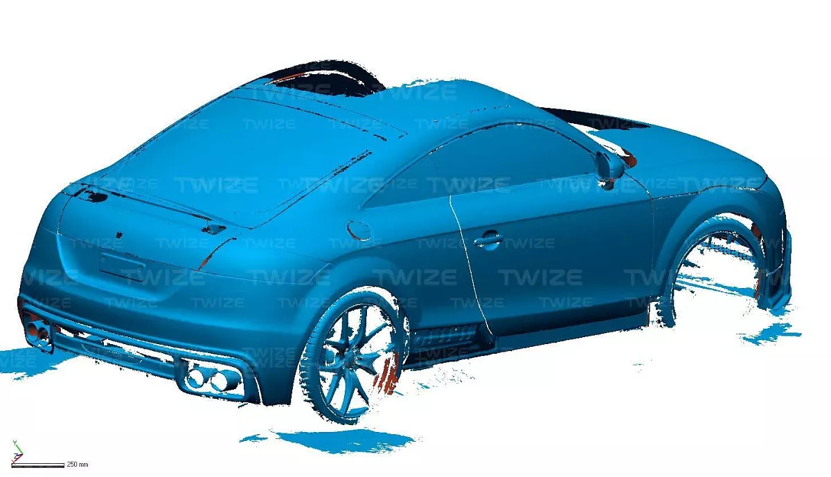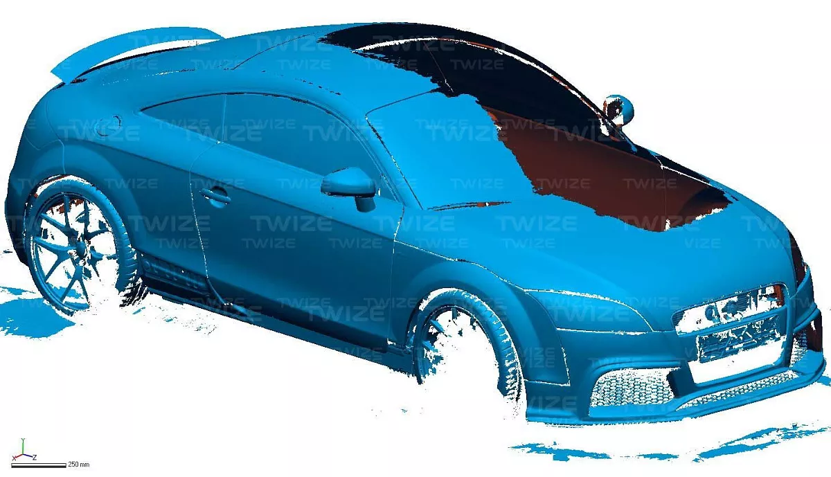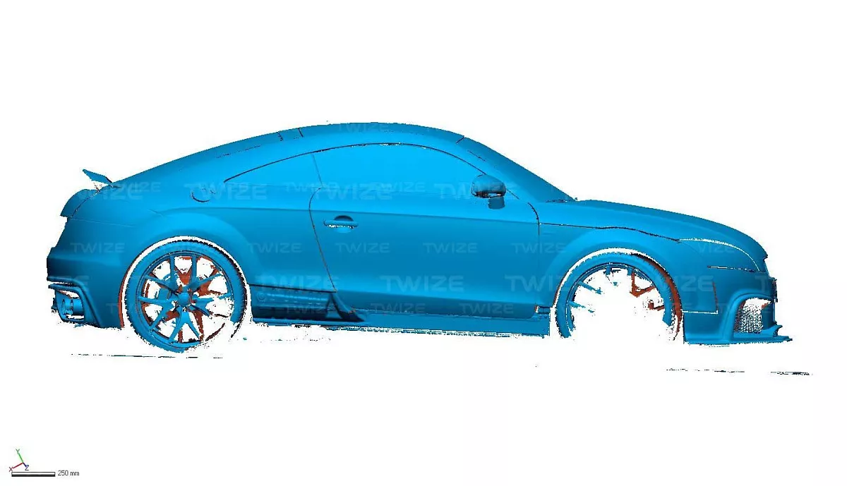 Было получено 3/5 части геометрии кузова в виде полигональной 3D‑модели для дальнейшей разработки обвеса в программном обеспечении 3D MAX.