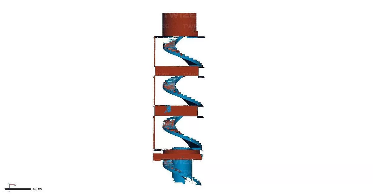 Создать 3D‑модель винтовой лестницы для разработки стеклянной облицовки.