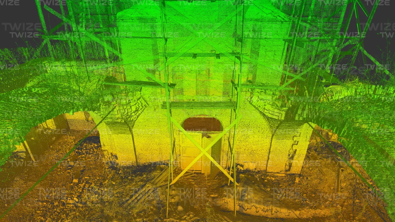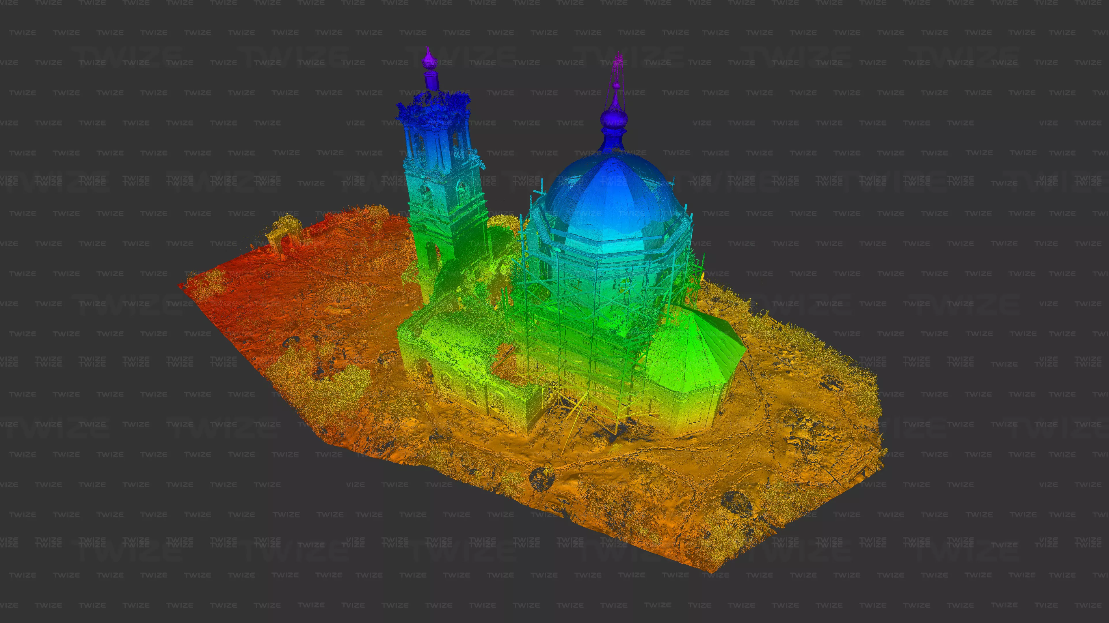 Использован для замеров 3D‑сканер Faro Focus S 150 и программный комплекс для автоматизированного проектирования REVIT. На основе полученного облака точек построена BIM‑модель церкви.