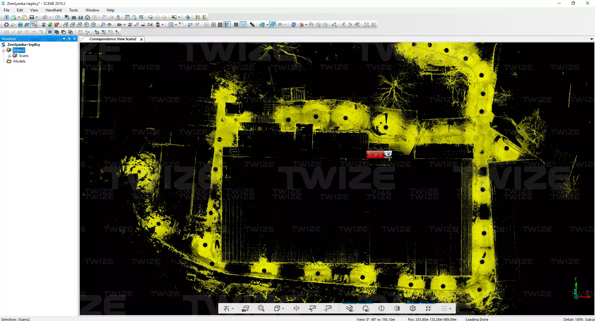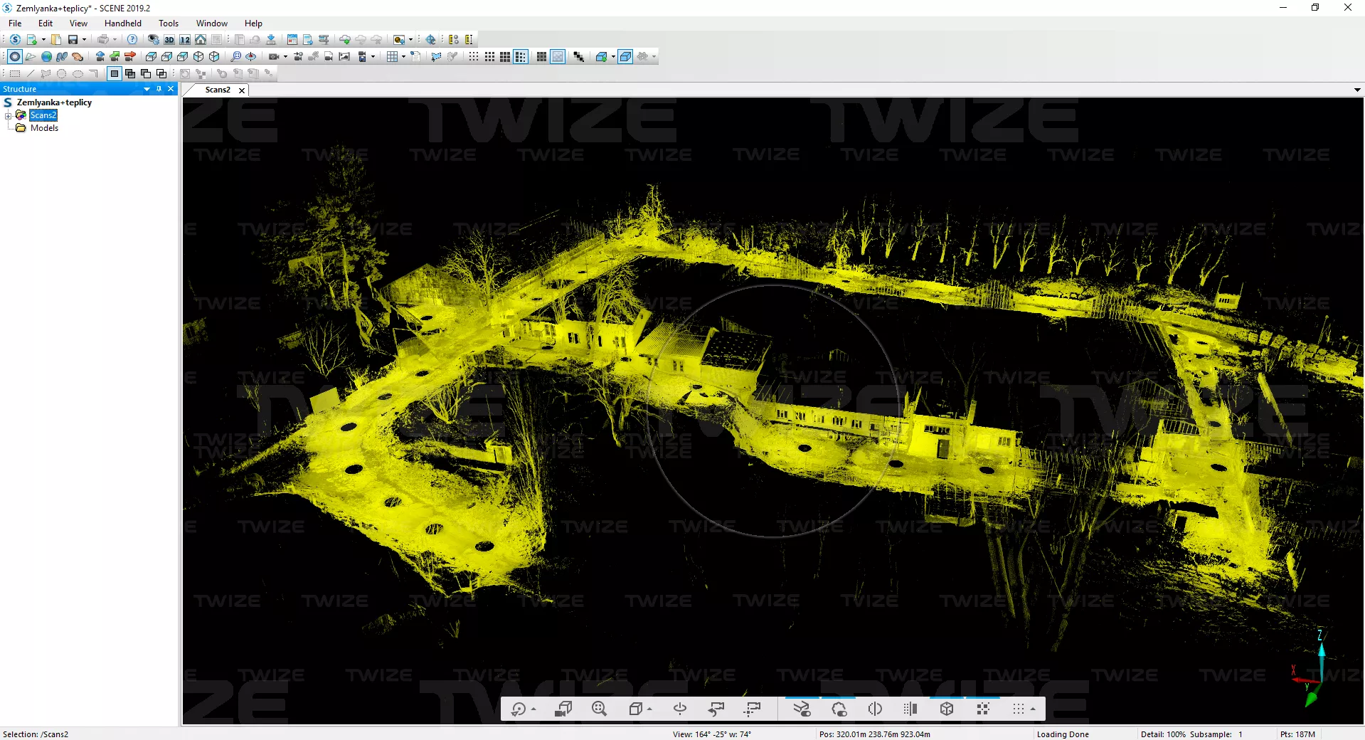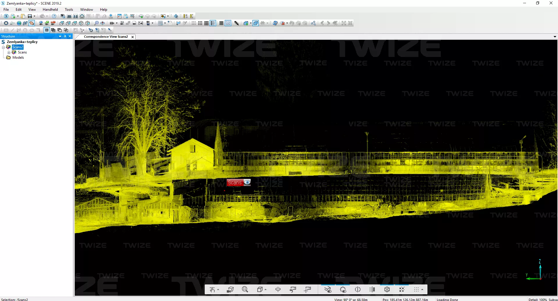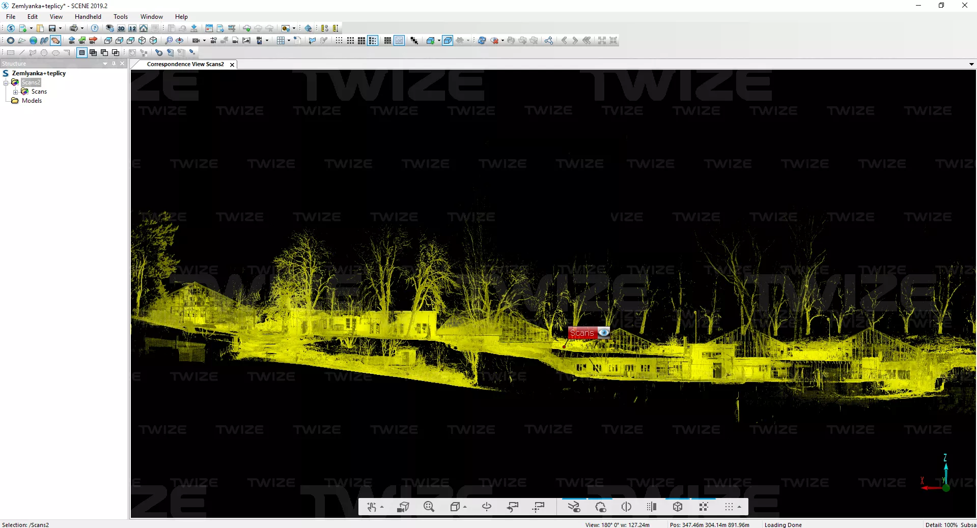 Проведено 3D‑сканирование тепличного комплекса. По результатам сканирования сформировано облако точек комплекса.