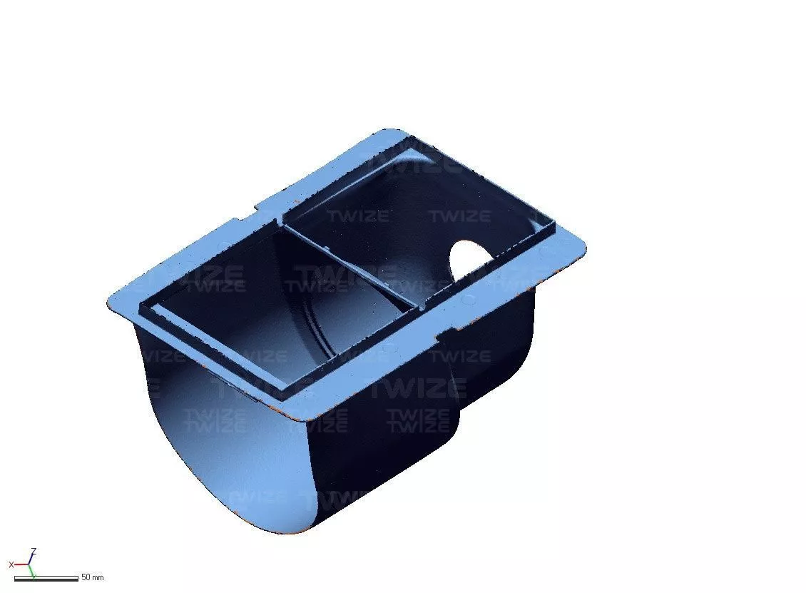 Проведено 3D‑сканирование оригинальной детали, построена твердотельная 3D‑модель. Модифицировано оригинальное изделие – сделано более устойчивым к ударам и износу. Напечатана из фотополимера готовая к использованию деталь.
