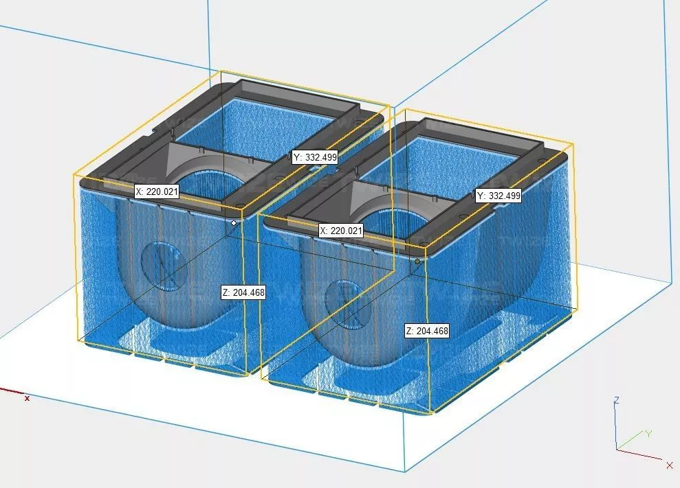 два рабочих элемента гидравлической системы бассейна с нанесенными элементами жесткости