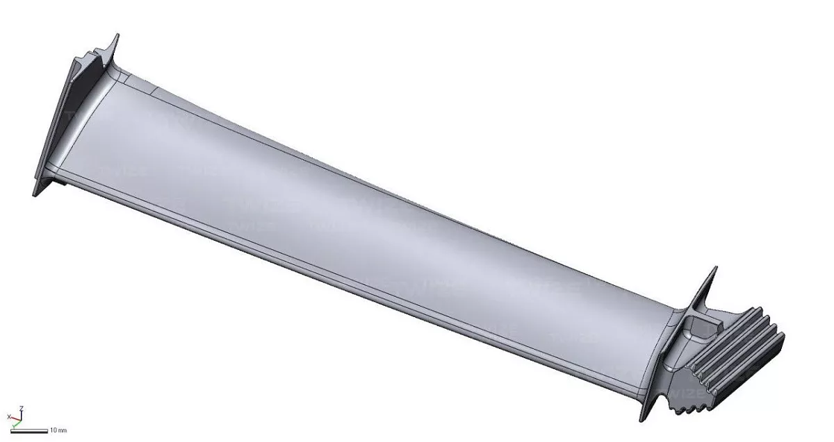 высокополигональная 3D‑модель лопатки турбины