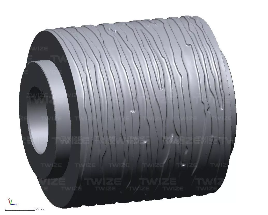 Воспроизвести в твердотельном файле вальцы для проката металла, повторяющие заданный узор с точностью 0,3 мм.