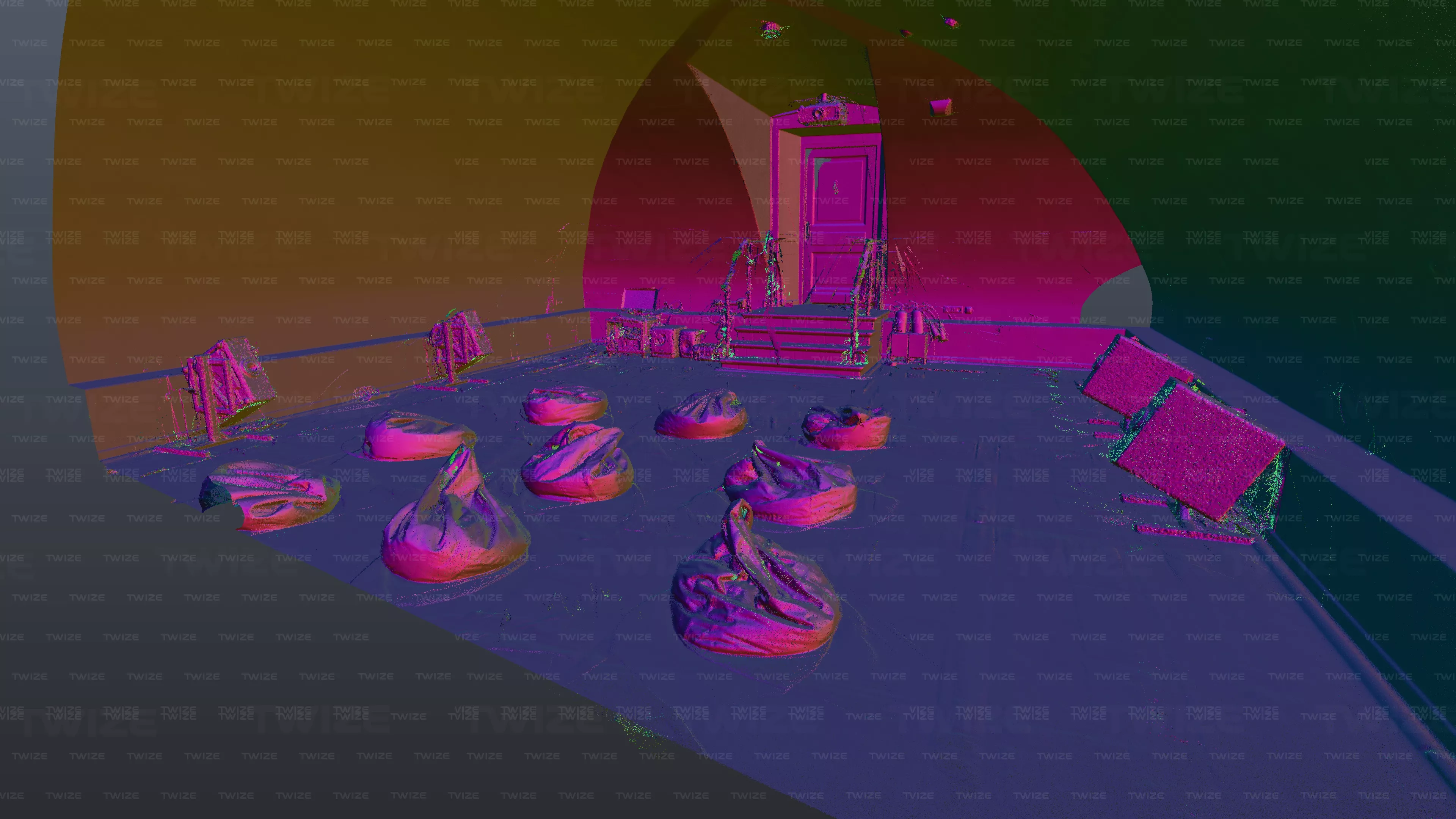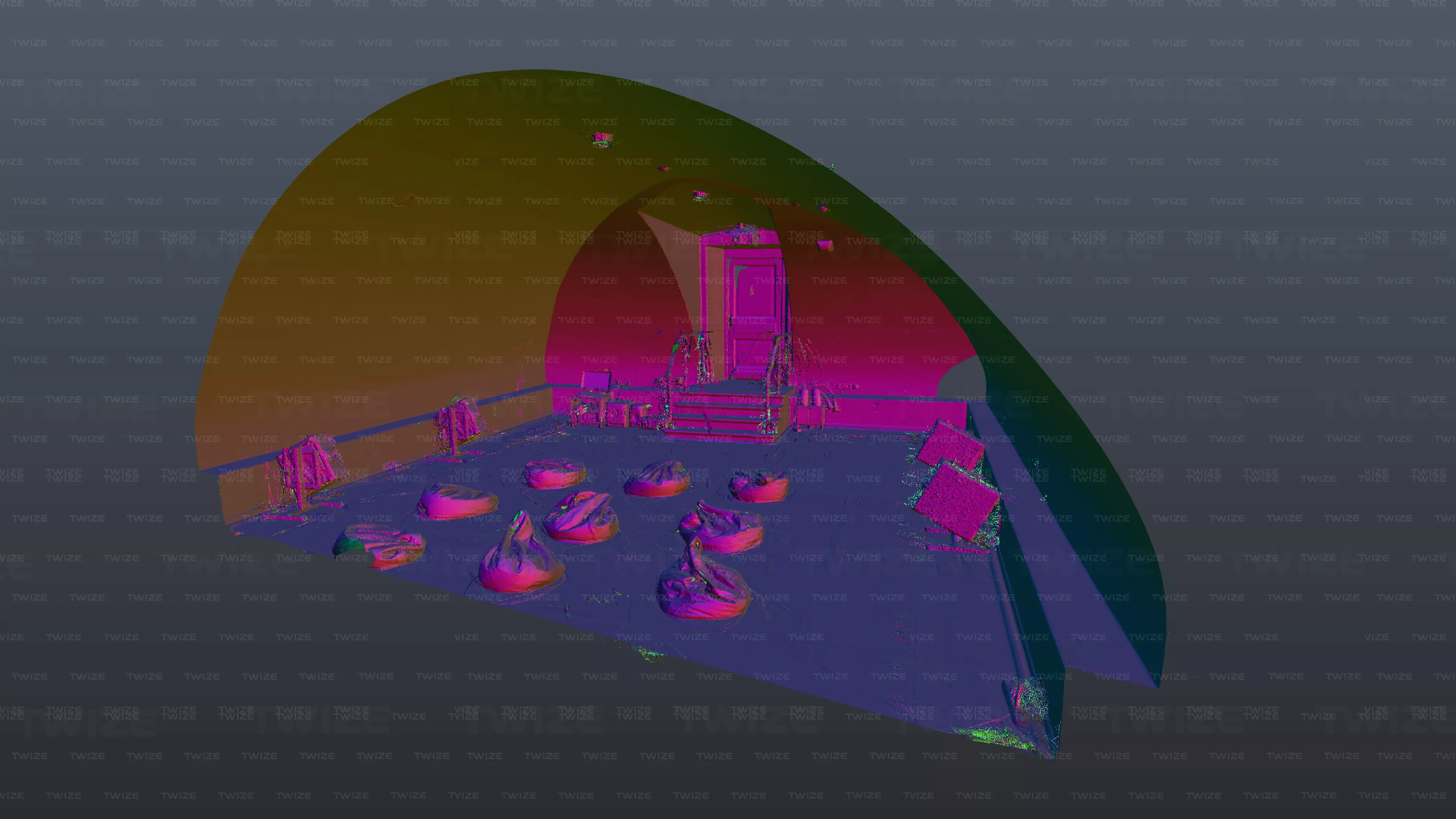 Проведено 3D‑сканирование зала. По результатам сканирования сформировано облако точек.