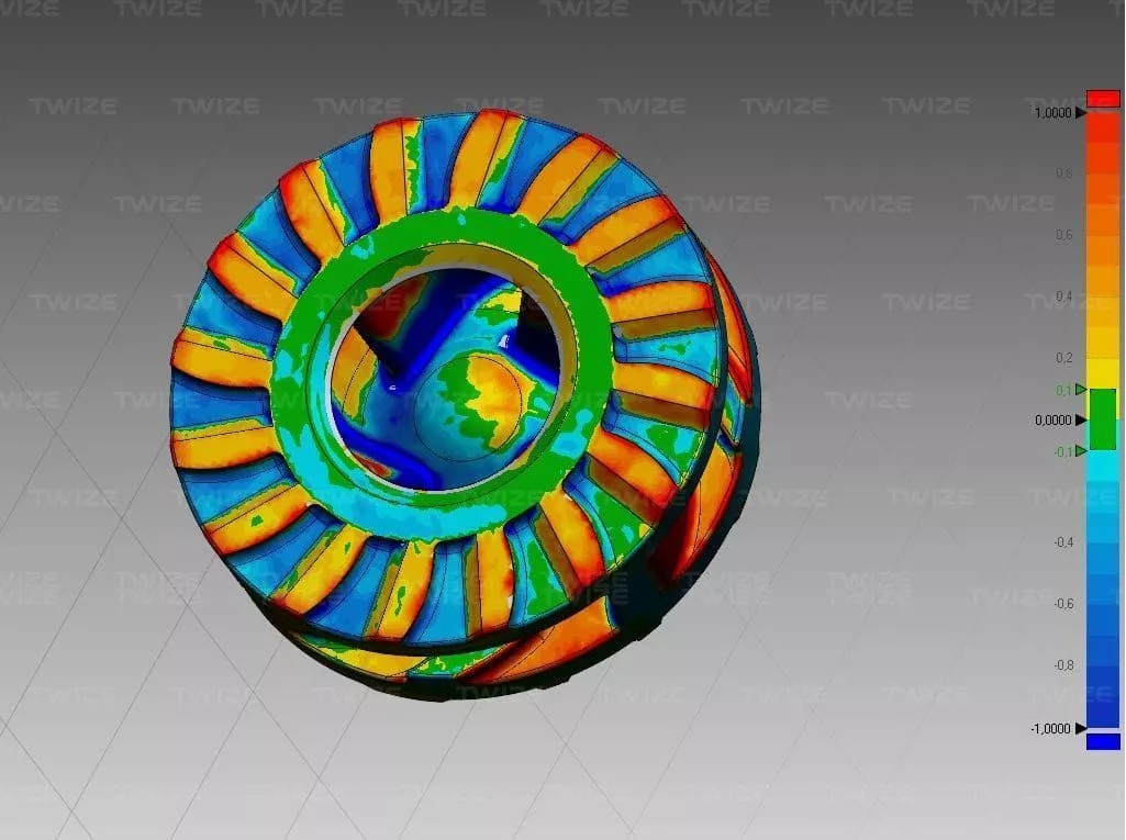 Был проведен спектральный анализ детали, чтобы определить химический состав металла. На основании 3D-сканирования детали была сформирована CAD‑модель колеса насоса и выпущена конструкторская документация для производства