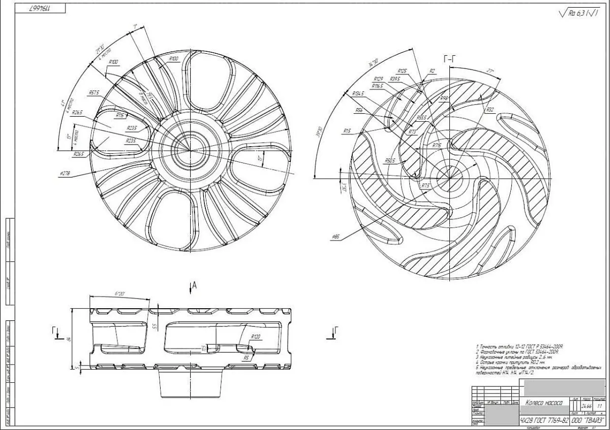 Создать методом обратного проектирования конструкторскую документацию колеса насоса для производства