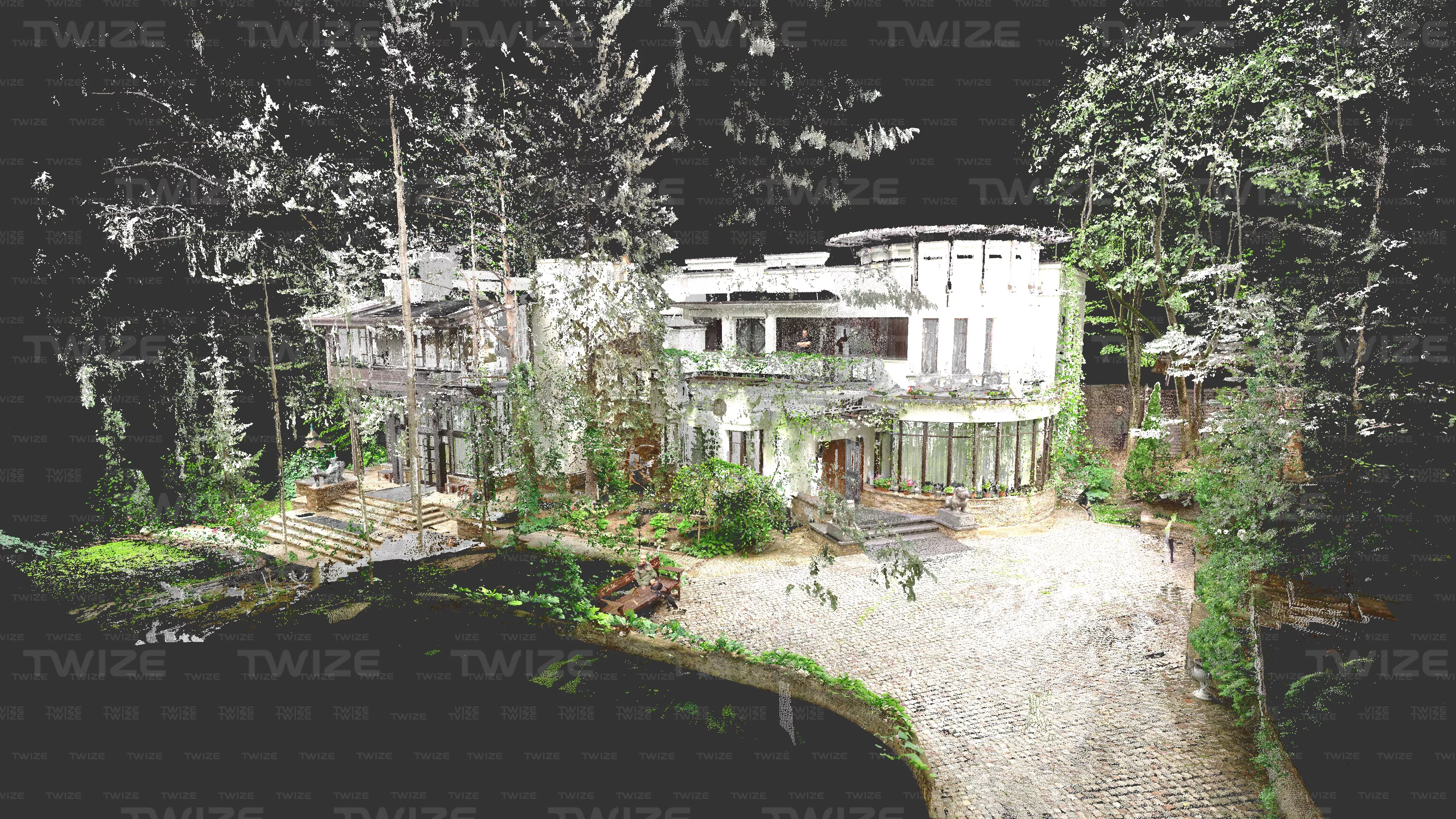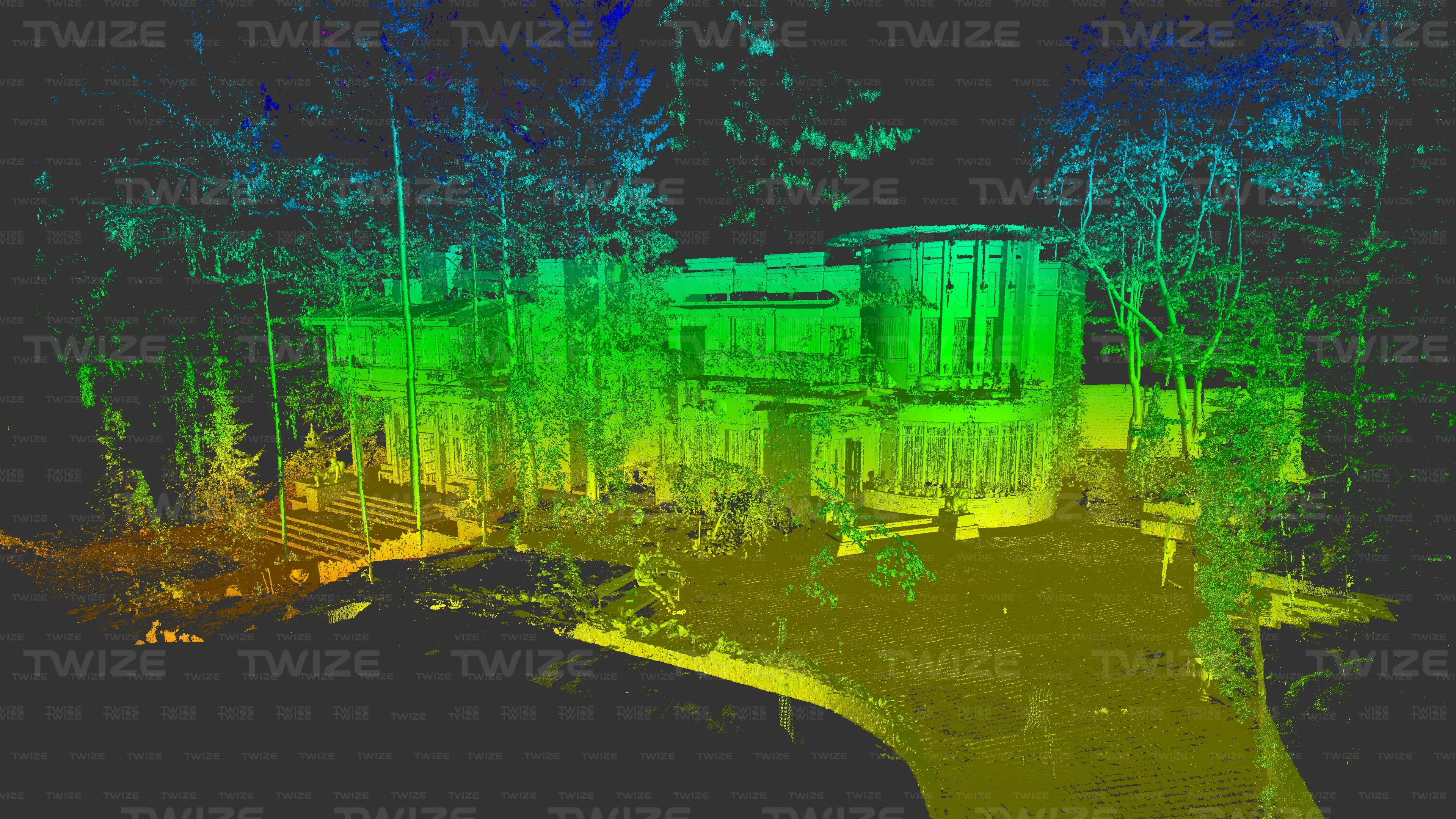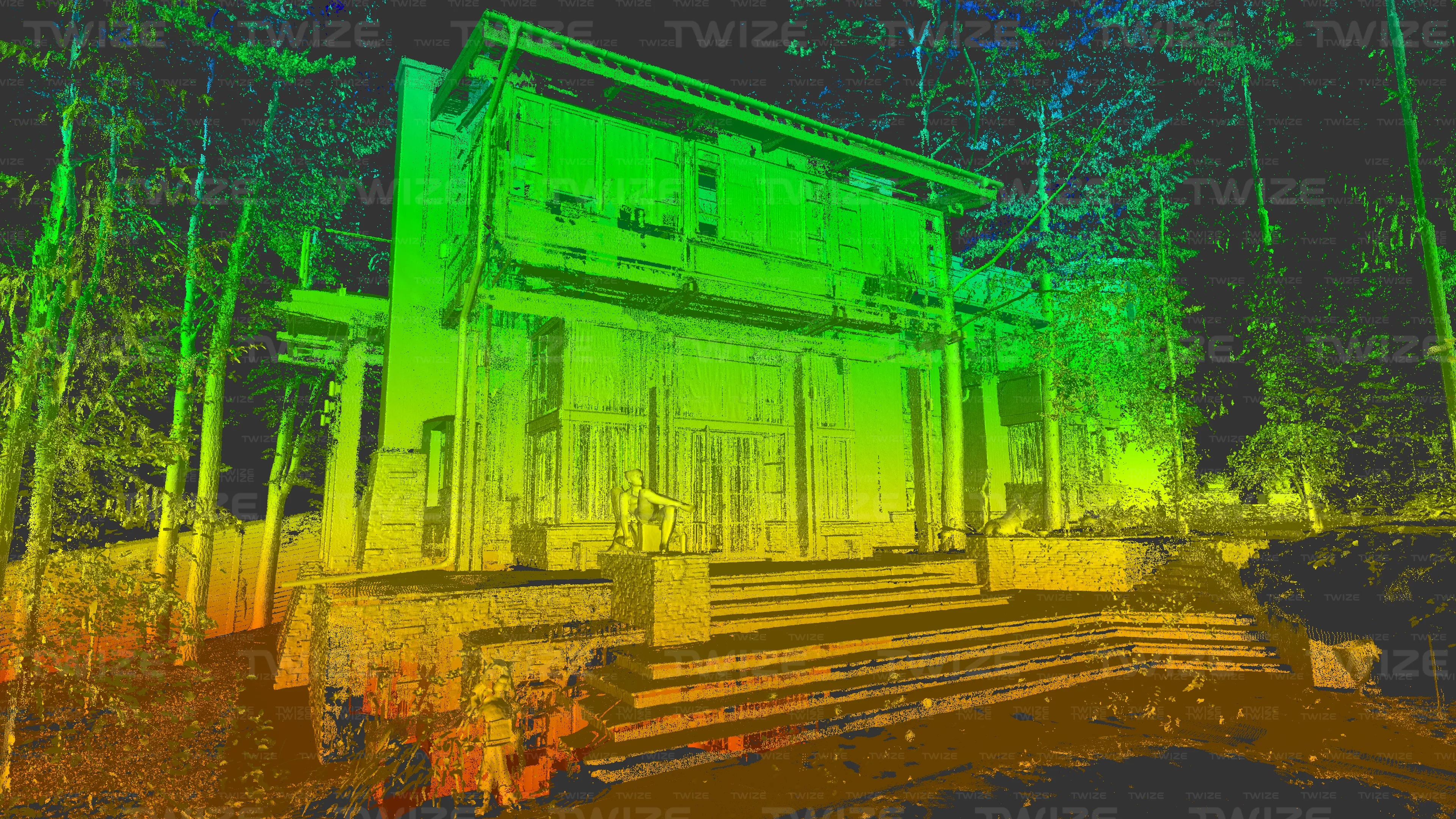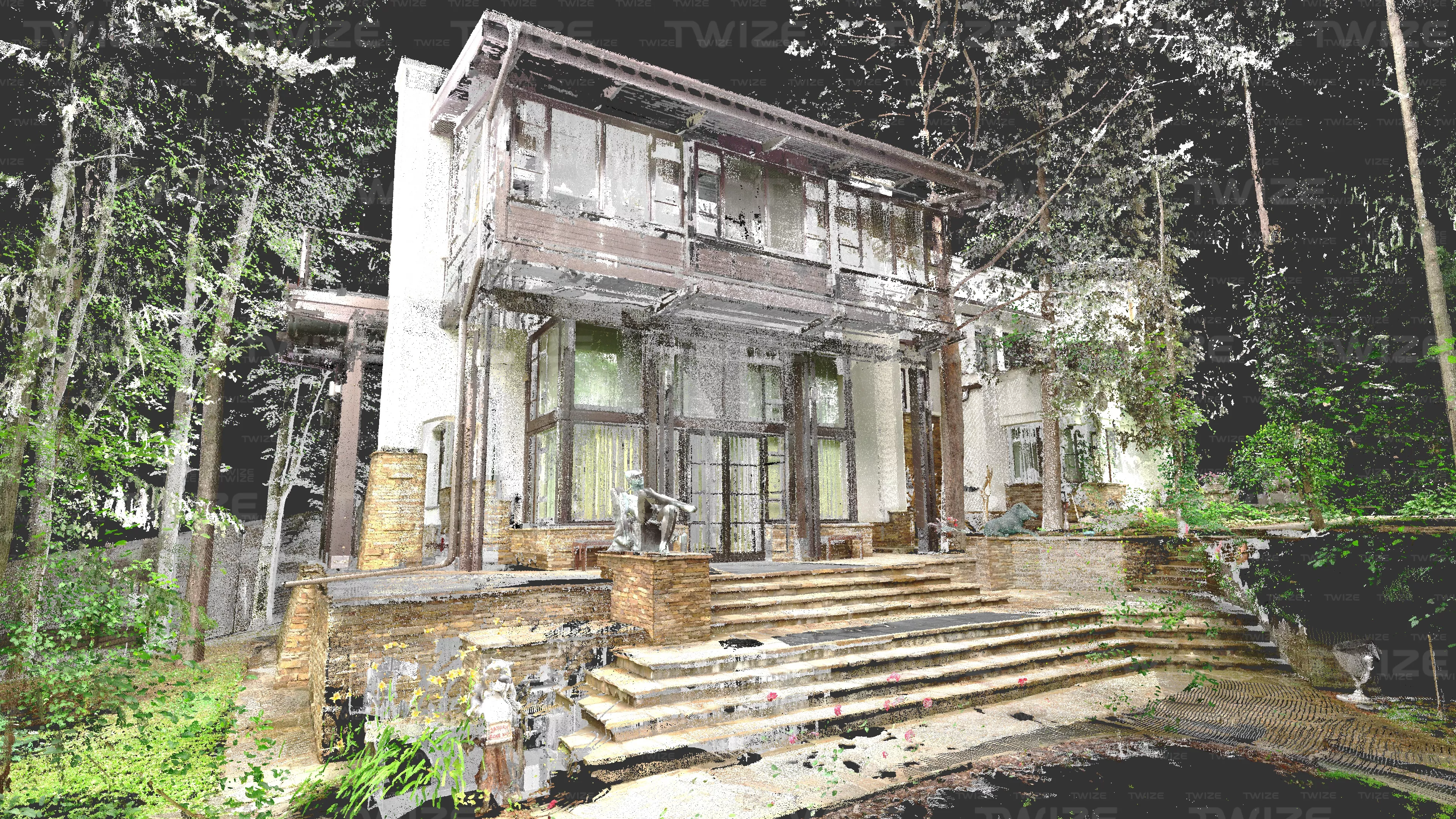 облако точек коттеджа с установками сканера размещенными в единой системе координат