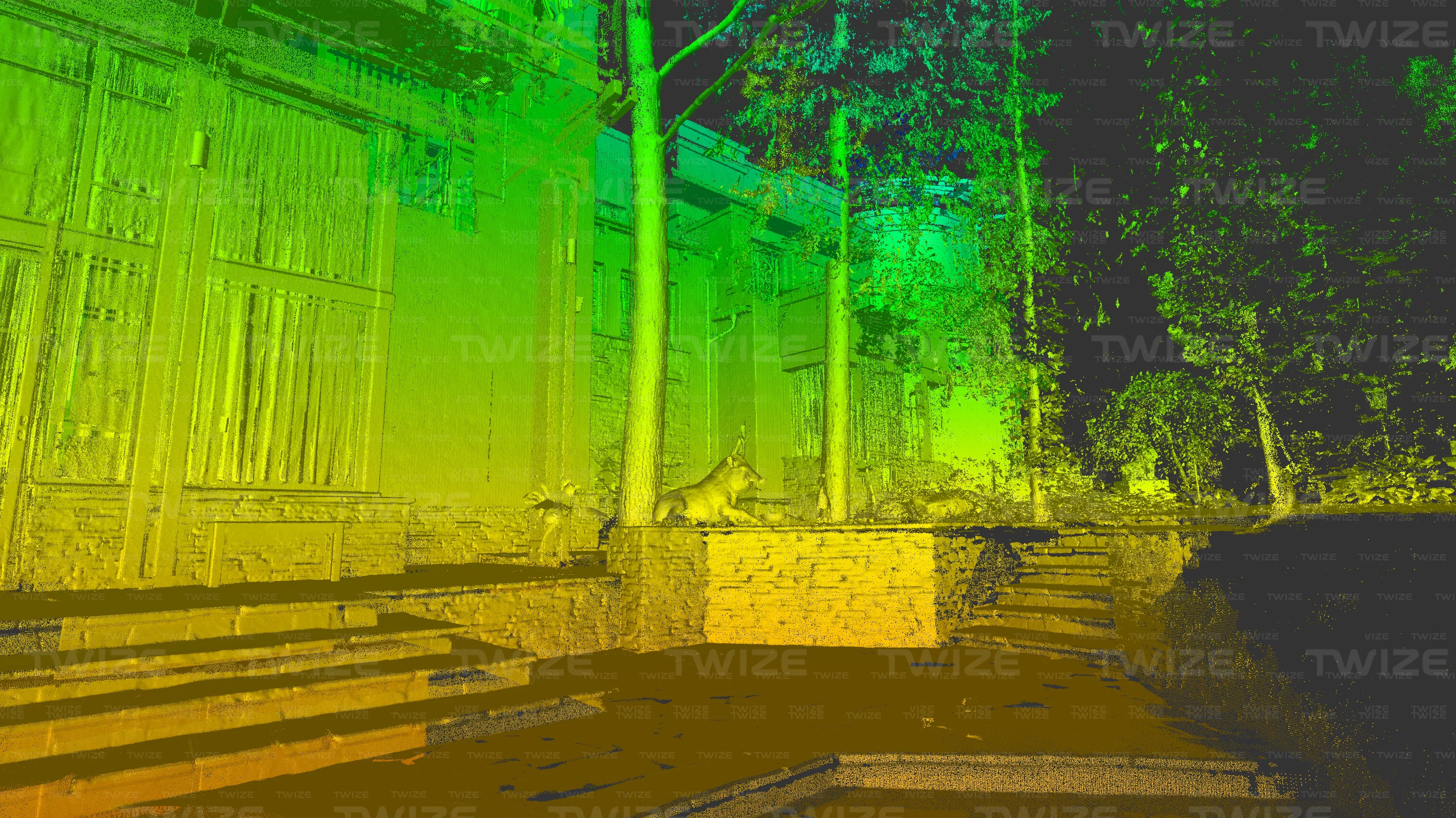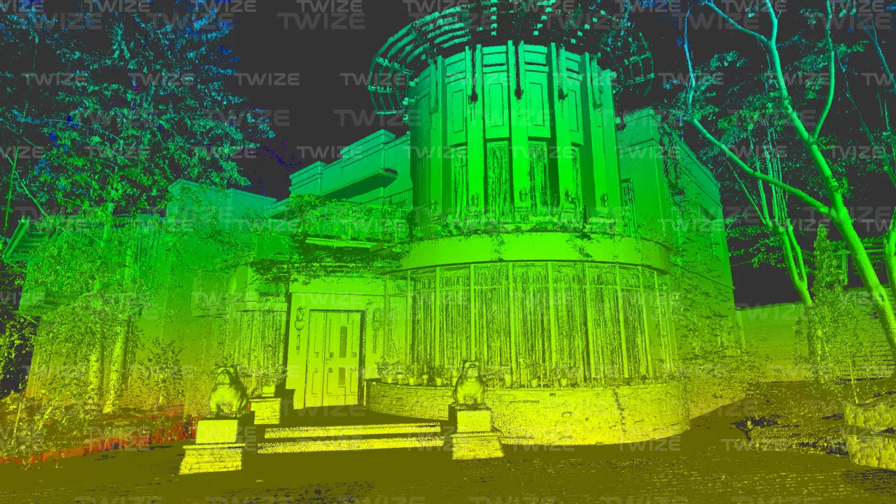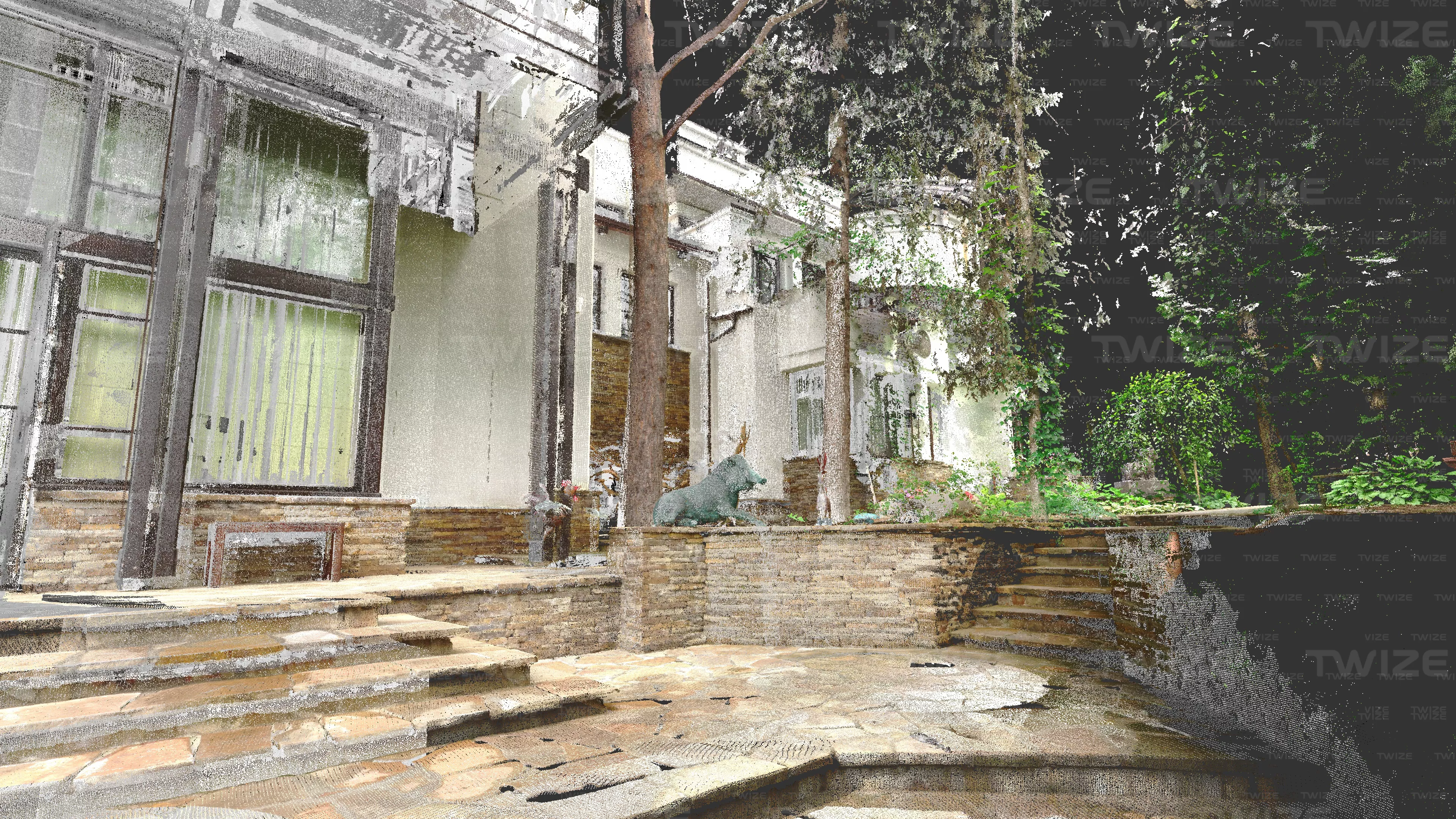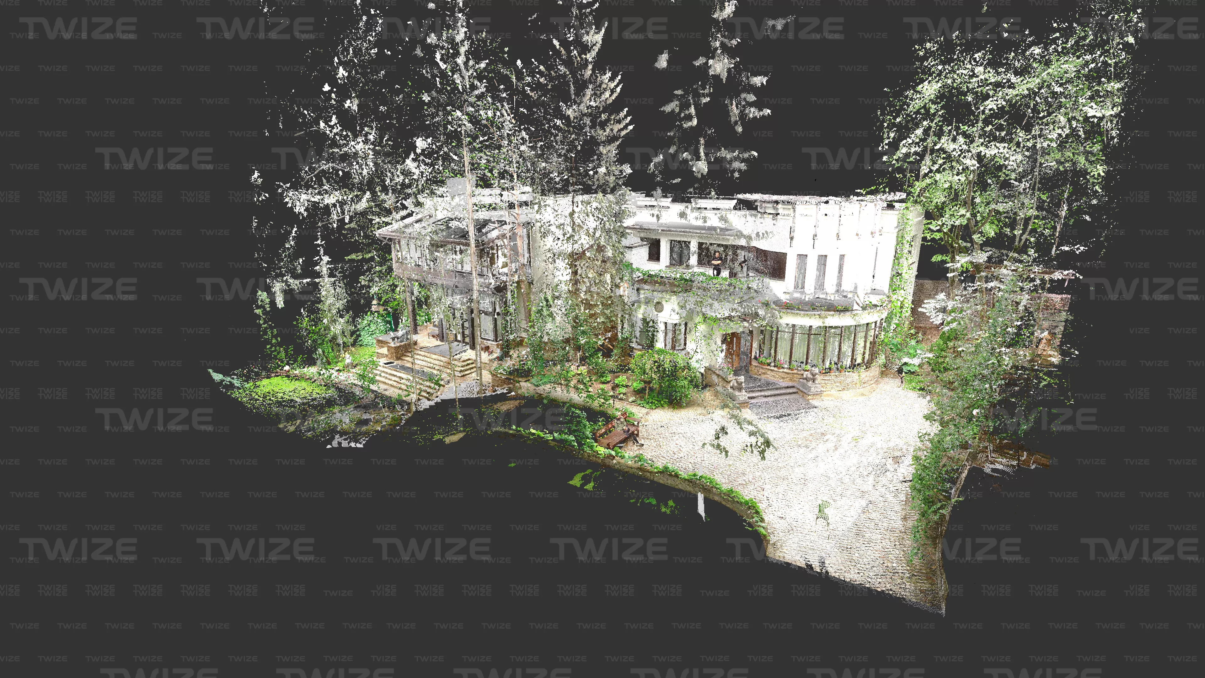 облако точек коттеджа с установками сканера размещенными в единой системе координат