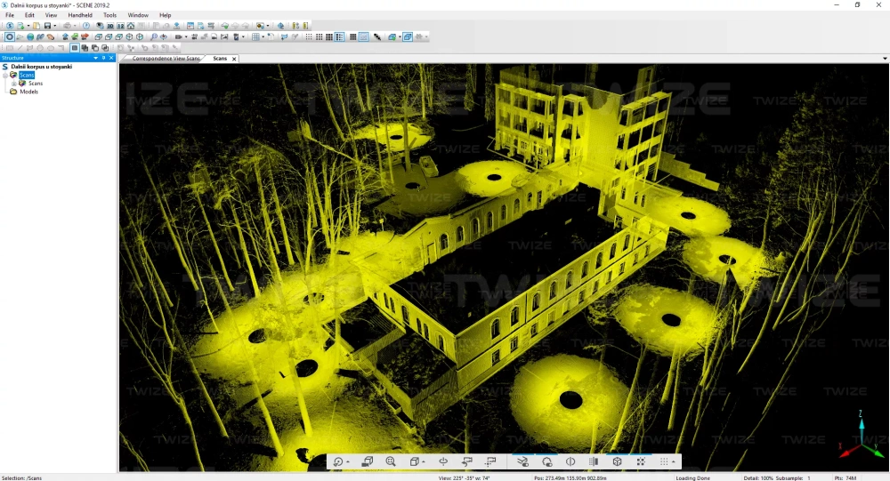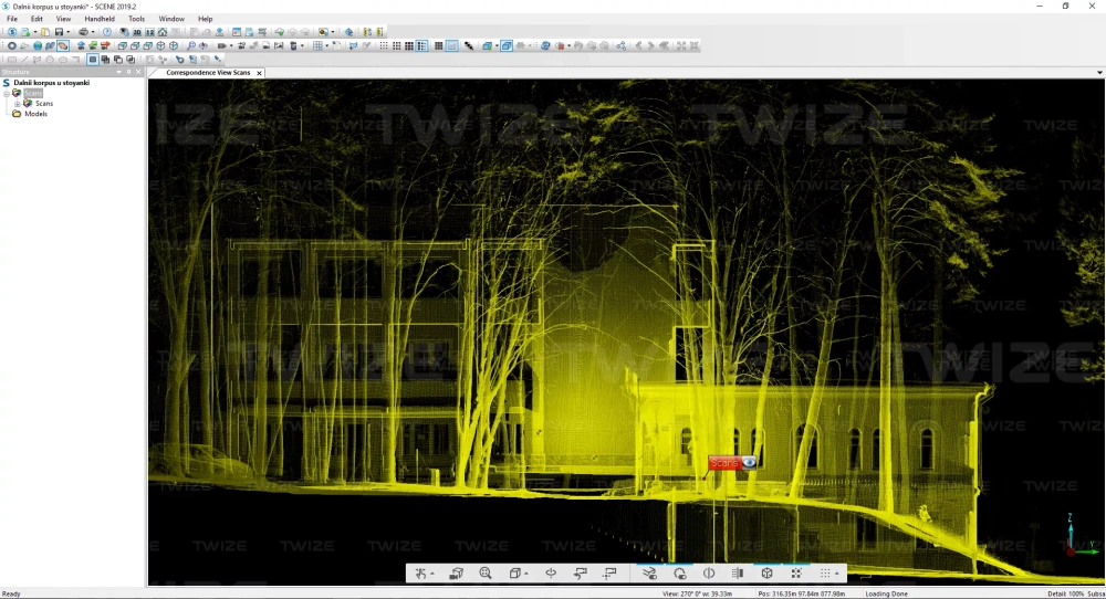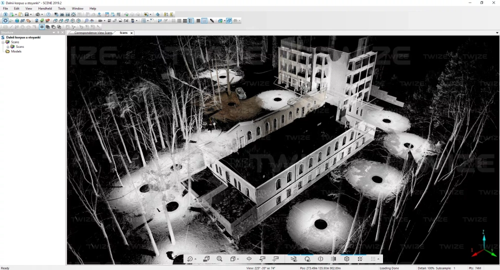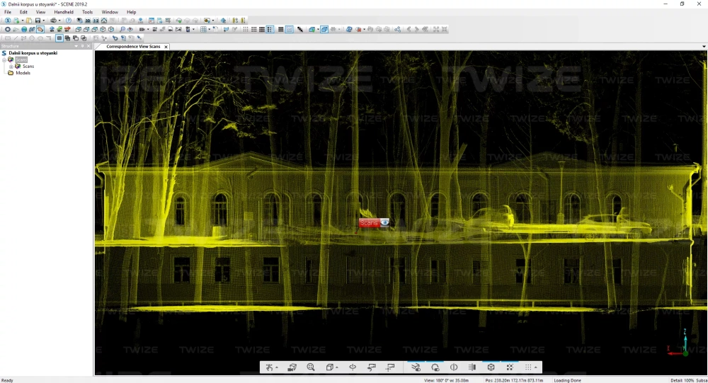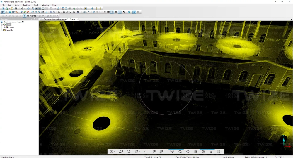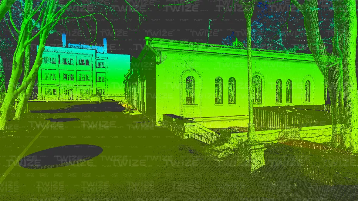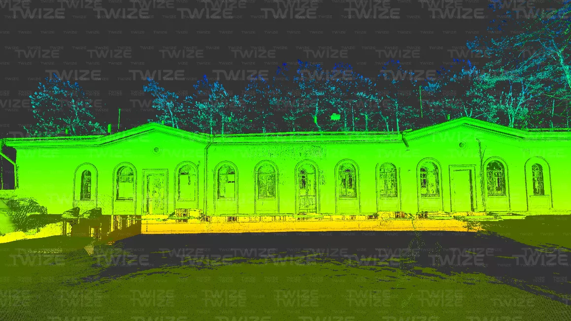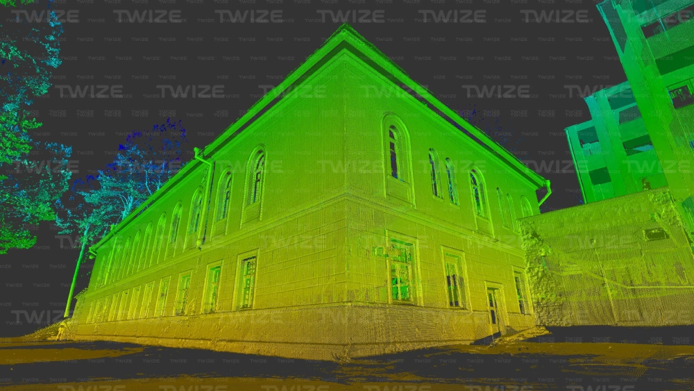 Проведено 3D‑сканирование фасада здания. По результатам сканирования сформировать облако точек здания.