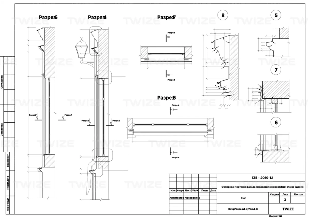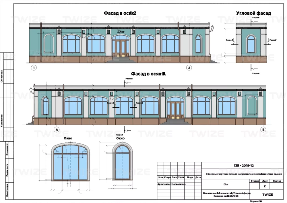 чертежи фасадов с нанесенными размерами и месторасположения элементов декора