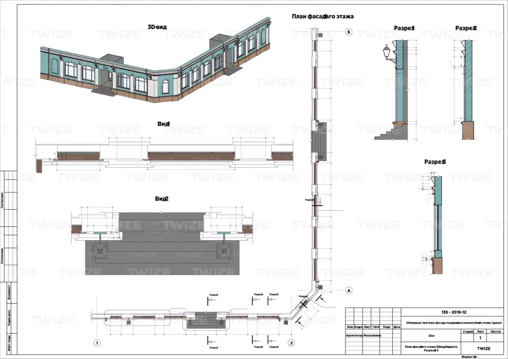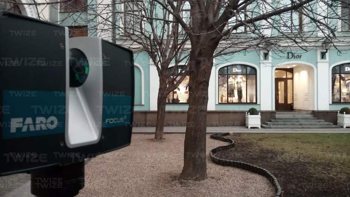 Выполнить обмерные работы для реставрации фасада здания методом 3D-сканирования. Зафиксировать все элементы декора фасада с цветовыми решениями.
