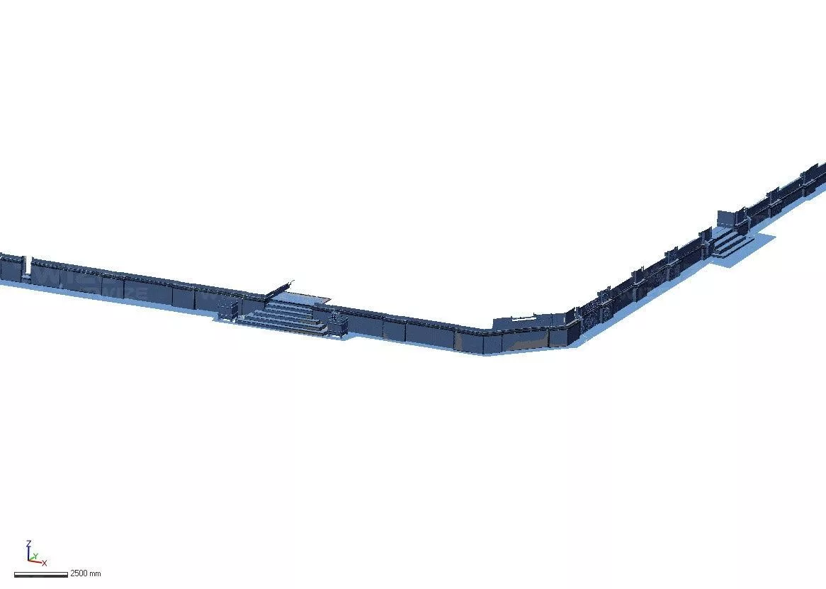 Проведено 3D‑сканирование здания. По результатам сканирования сформировано облако точек здания со всеми элементами декора. Создан чертеж фасада с разверткой стен и размерами элементов декора с их расположением. Выделен участок фасада с облицовочным камнем с преобразованием облака в полигональную 3D‑модель. На основании полигональной 3D‑модели создана твердотельную модель облицовочного камня со ступеньками входов для дальнейшего его распила под размер.