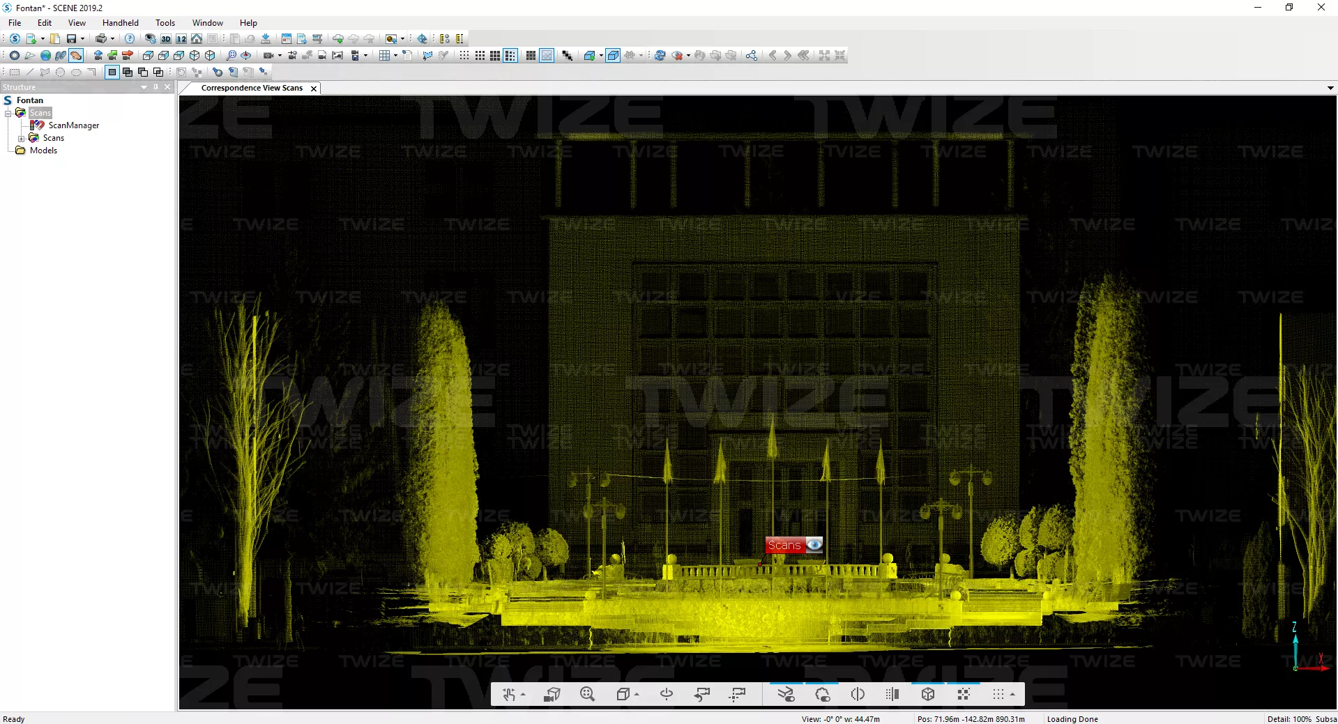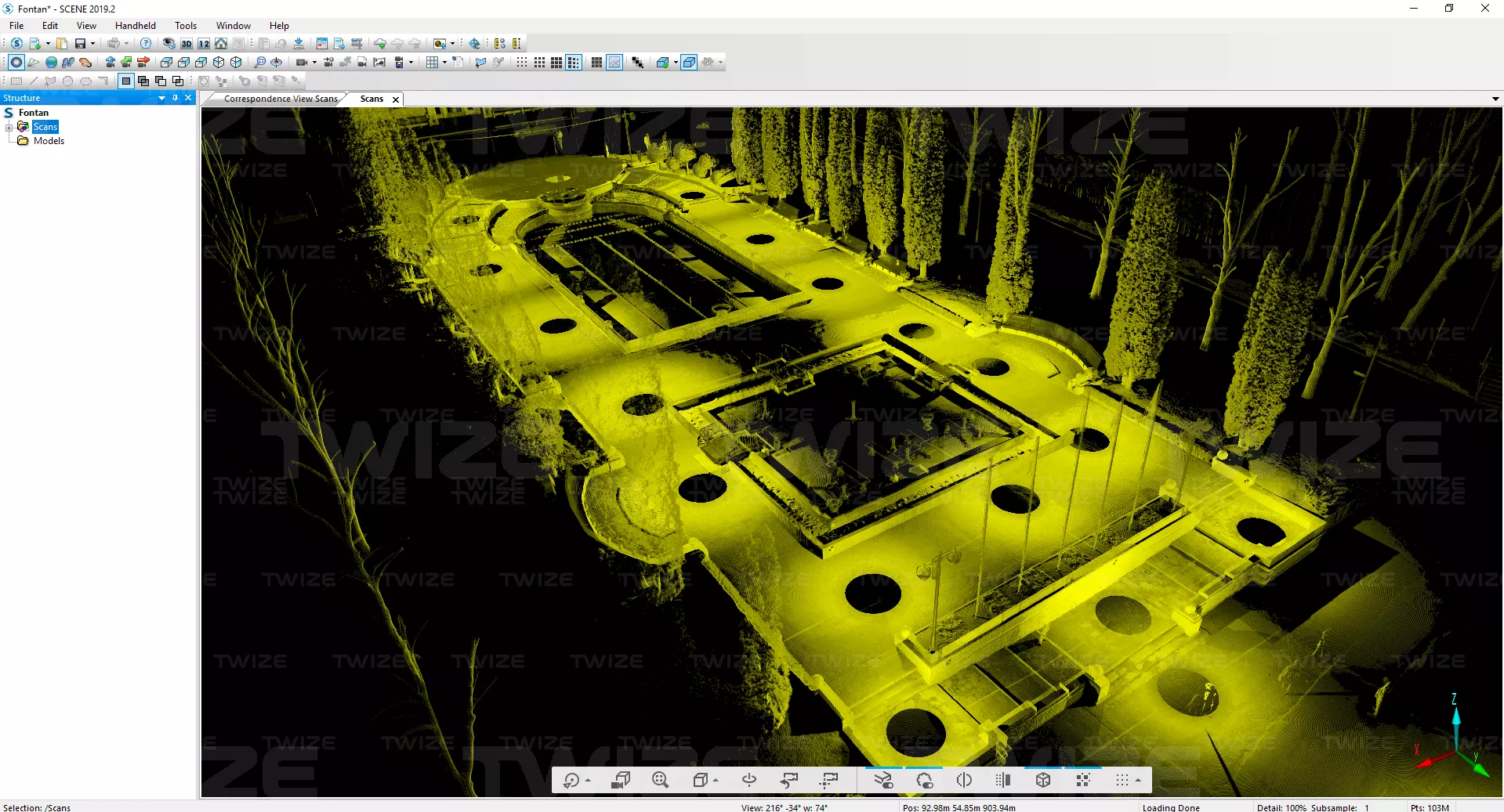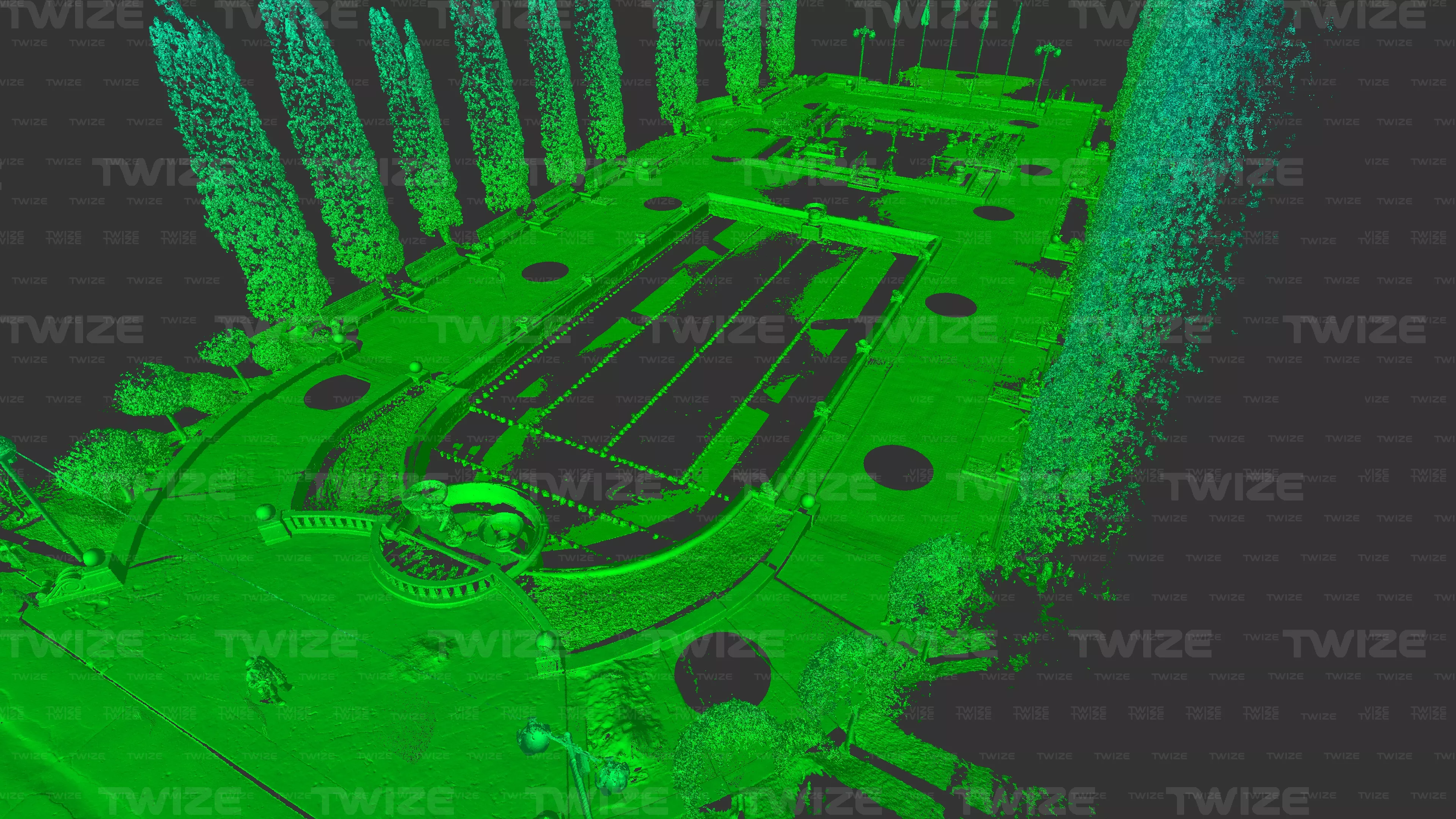 Проведено 3D‑сканирование фонтана. По результатам сканирования сформировано облако точек фонтана.