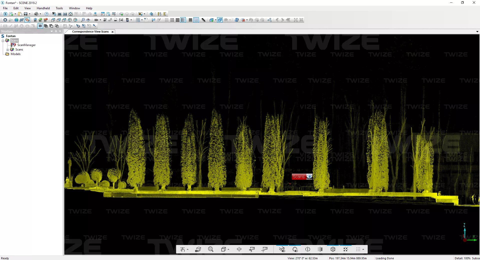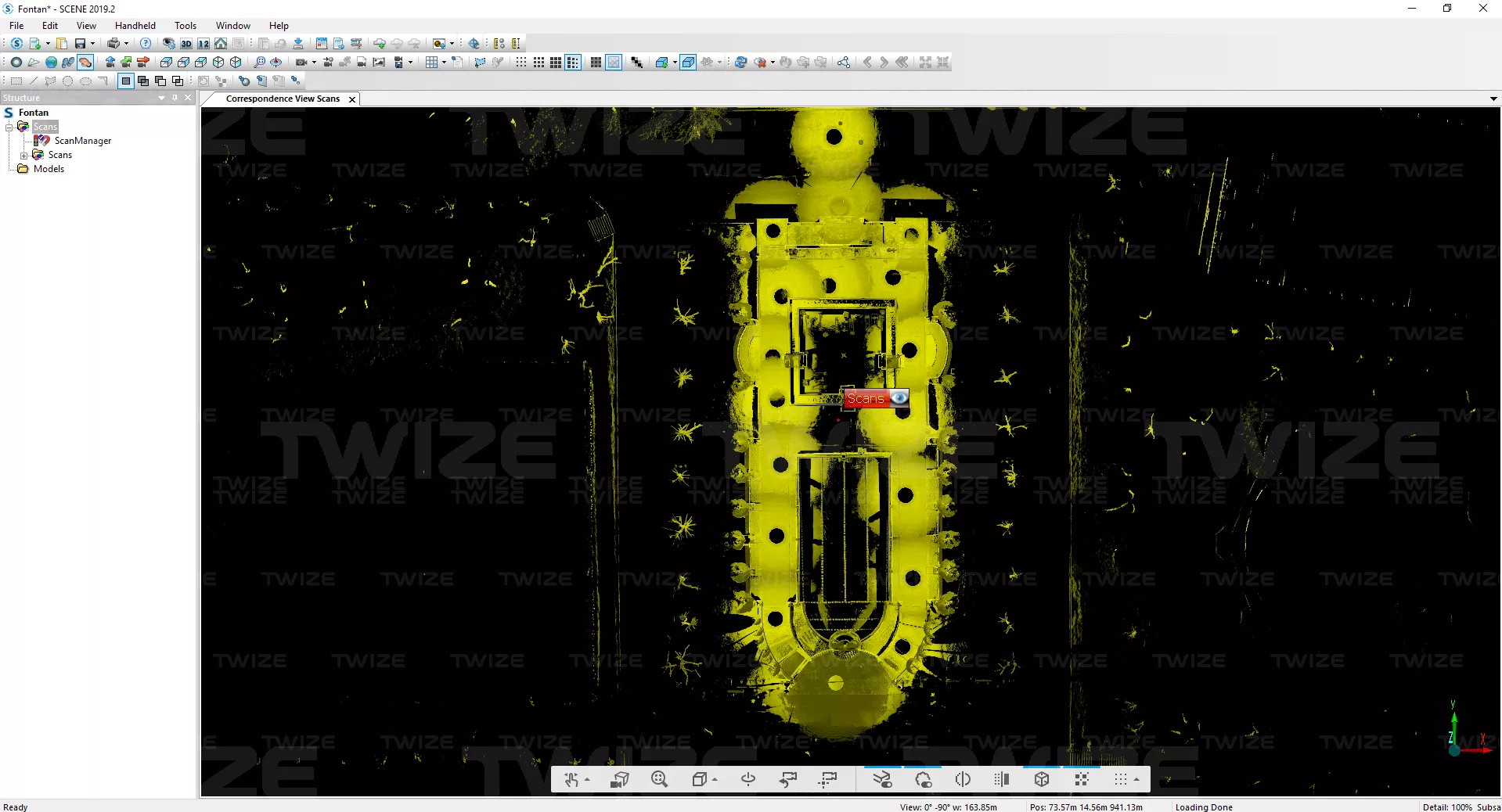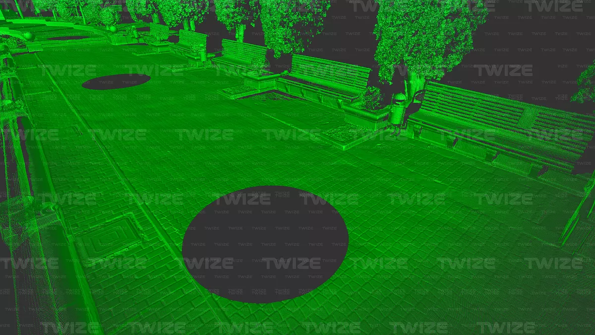Проведено 3D‑сканирование фонтана. По результатам сканирования сформировано облако точек фонтана.