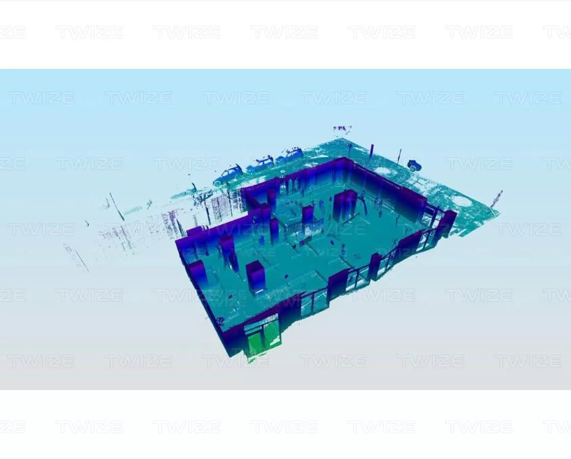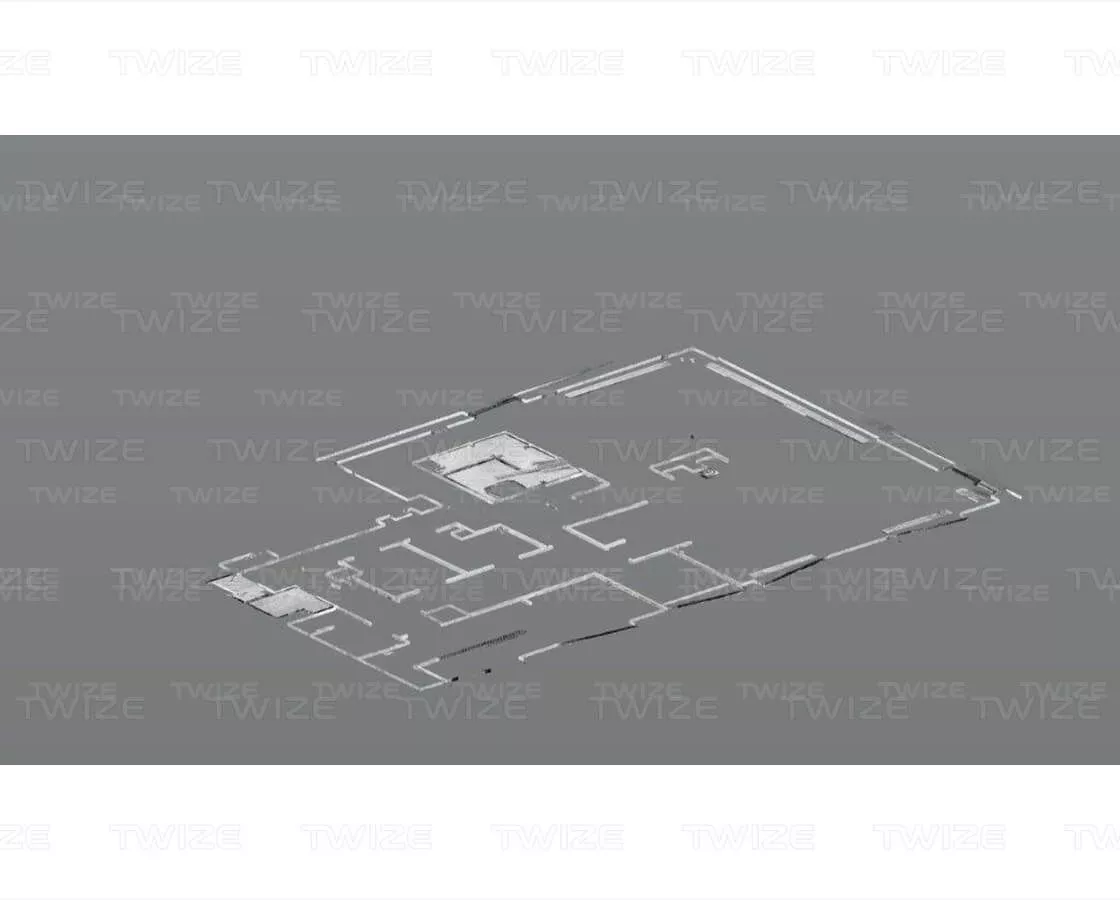 Проведено 3D‑сканирование интерьеров помещения. По результатам сканирования сформированы обмерочные чертежи в формате .DWG, а также 3D‑модель.