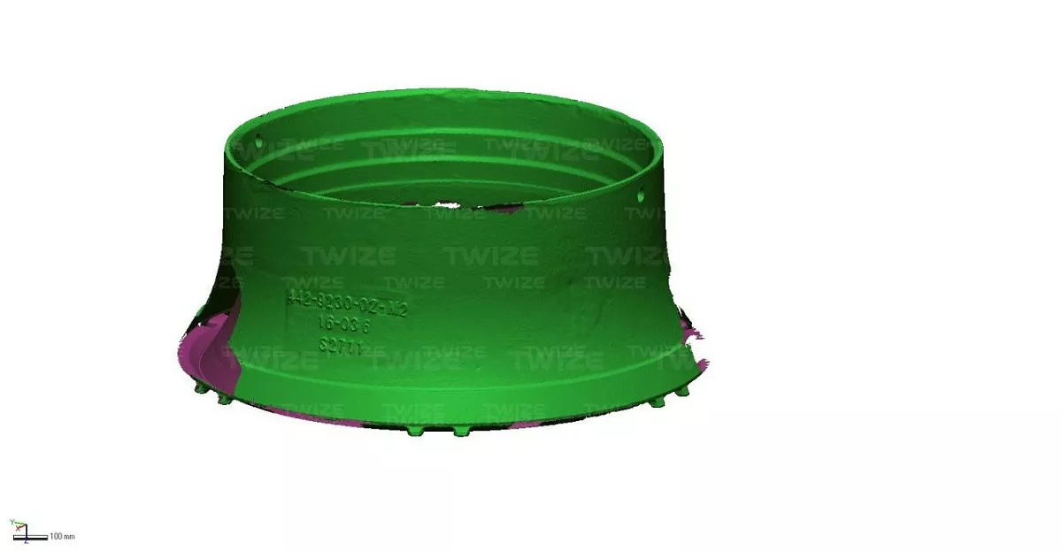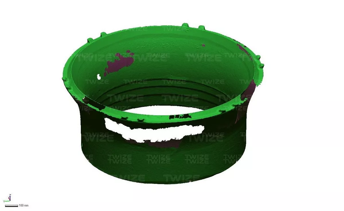 Проведено 3D‑сканирование оригинальной детали, построена твердотельную 3D‑модель. Составлен комплект чертежей обечайки.