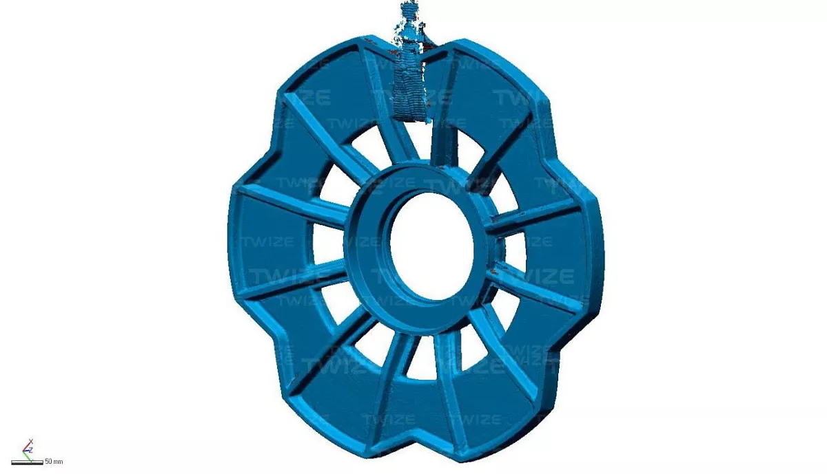 Проведено 3D‑сканирование изделия. Создана CAD‑модель изделия. На основании CAD‑модели построен чертеж по ЕСКД для производства и произведены детали путем металлического литья с последующей мехобработкой.