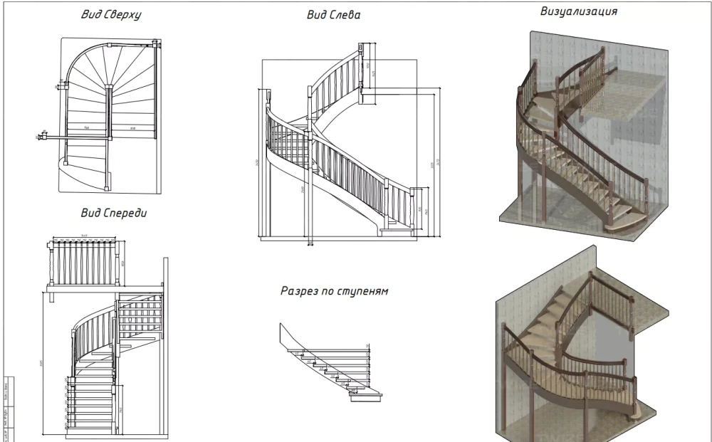 чертеж винтовой лестницы