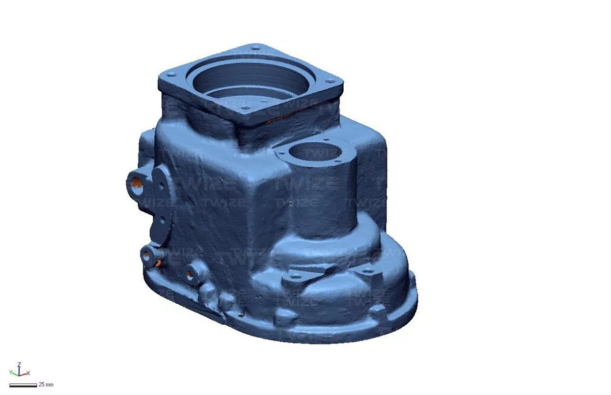 Проведено 3D‑сканирование оригинальной детали, на основе полученного облака точек построена твердотельная 3D‑модель.