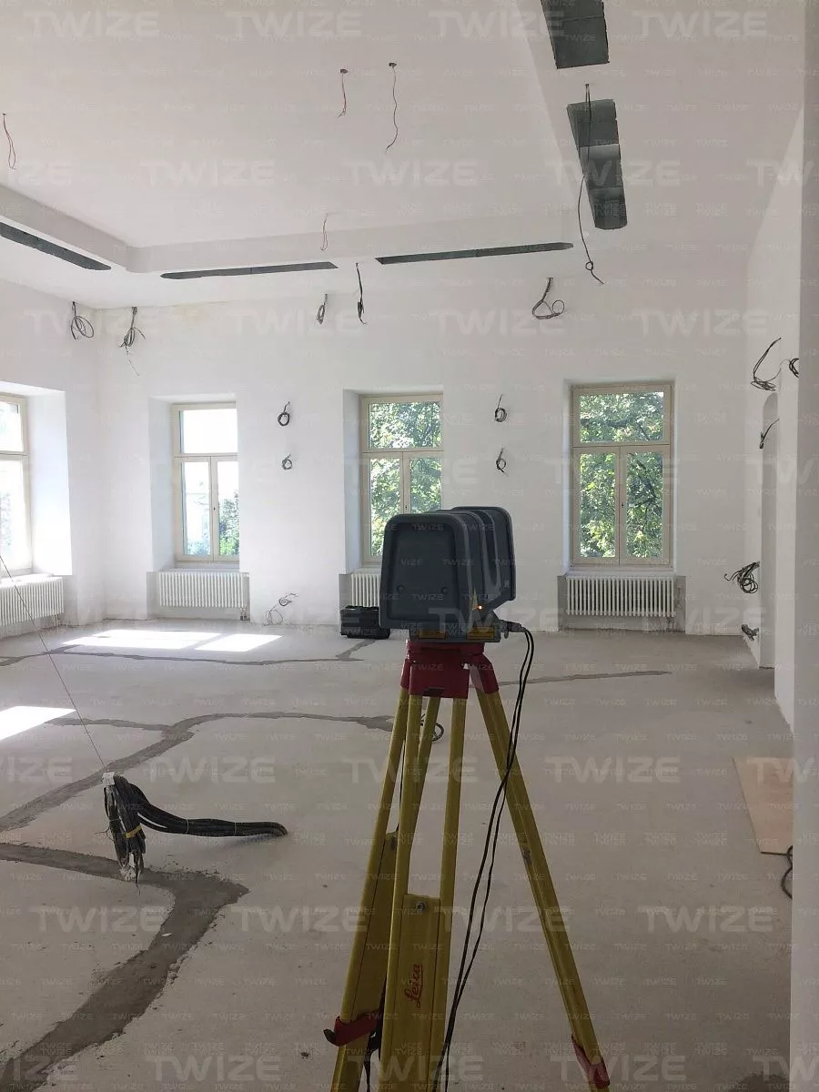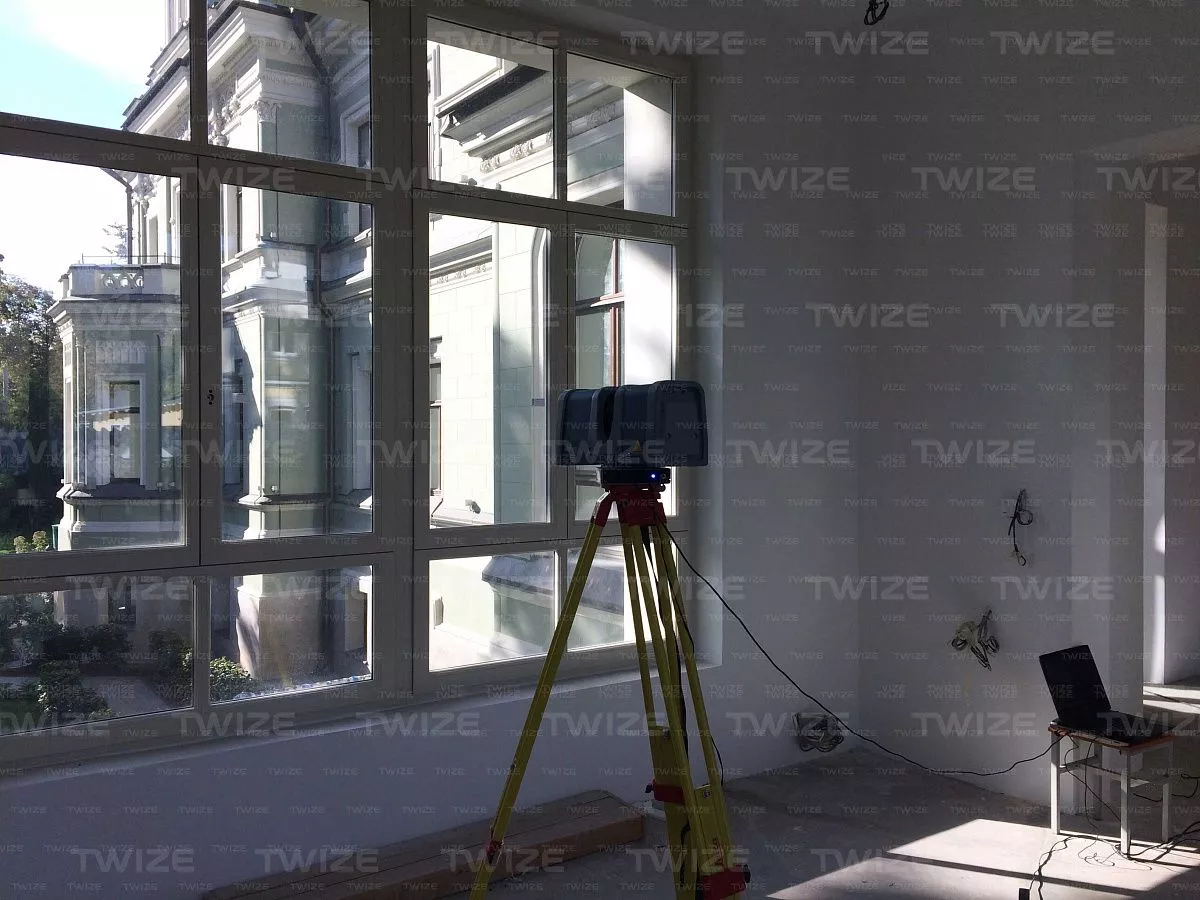 Перед специалистами нашей компании стояла задача провести контроль параллельности и перпендикулярности потолка и пола относительно стен с оконными проемами в 16 помещениях.